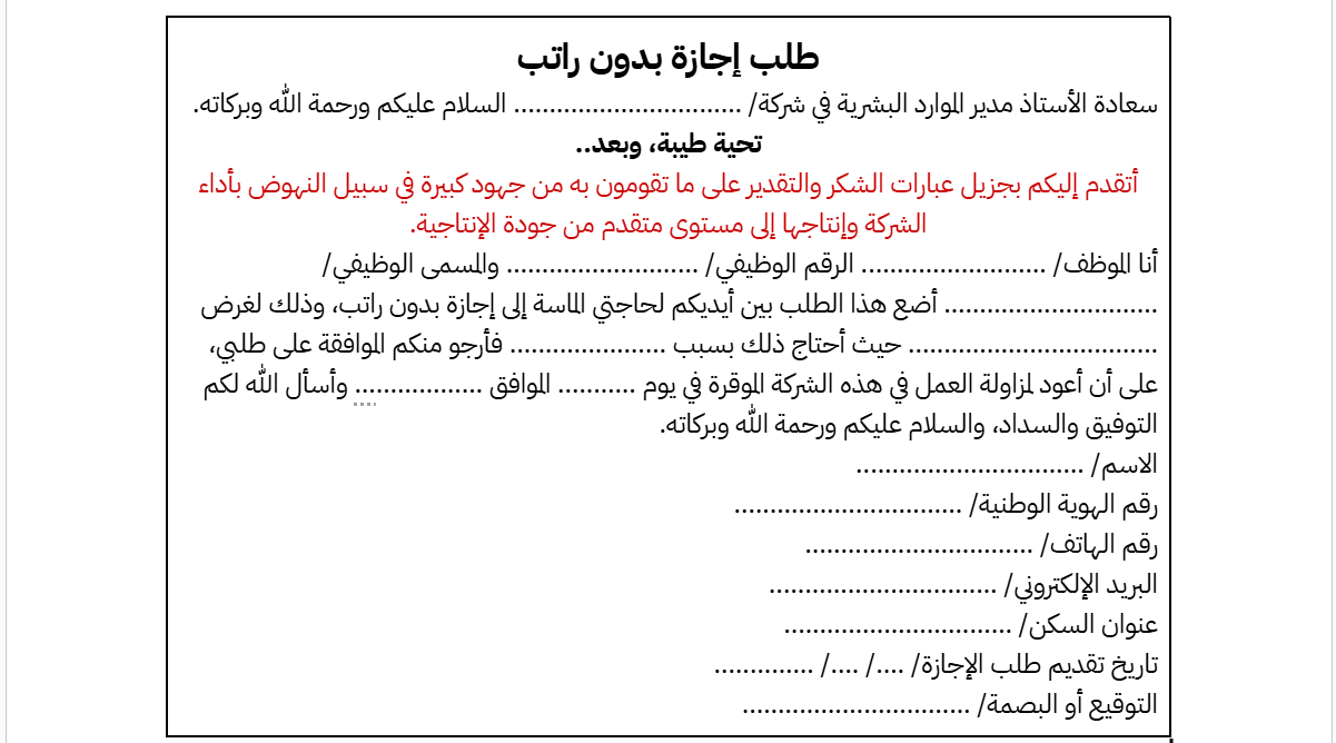 - توجيه الخطاب إلى القائمين باستقبال طلبات الإجازات، مع عدم تخطي المسؤولين.