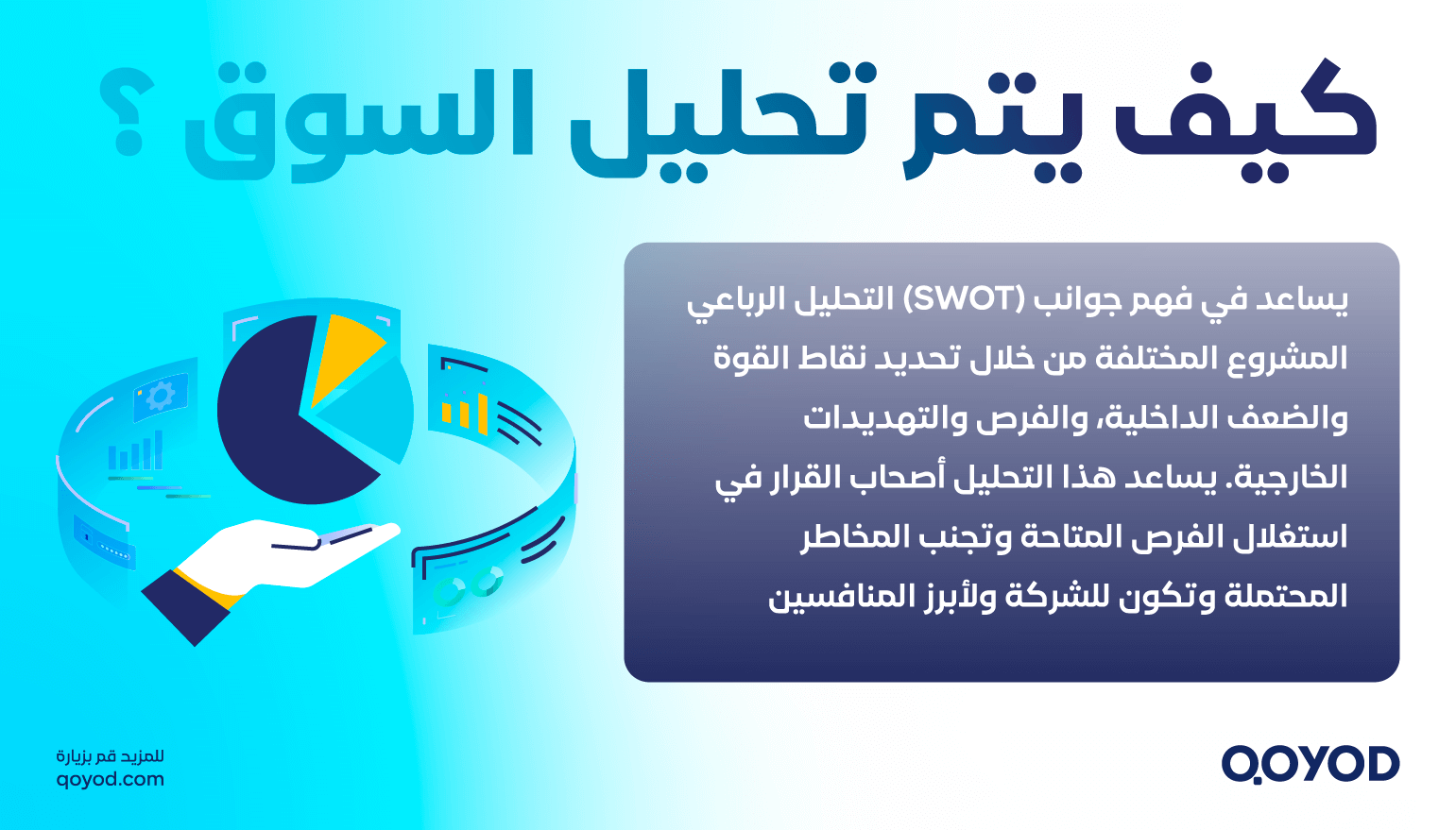تحليل السوق: التحليل الرباعي (SWOT) يساعد في فهم جوانب المشروع المختلفة من خلال تحديد نقاط القوة والضعف الداخلية، والفرص والتهديدات الخارجية. يساعد هذا التحليل أصحاب القرار في استغلال الفرص المتاحة وتجنب المخاطر المحتملة.