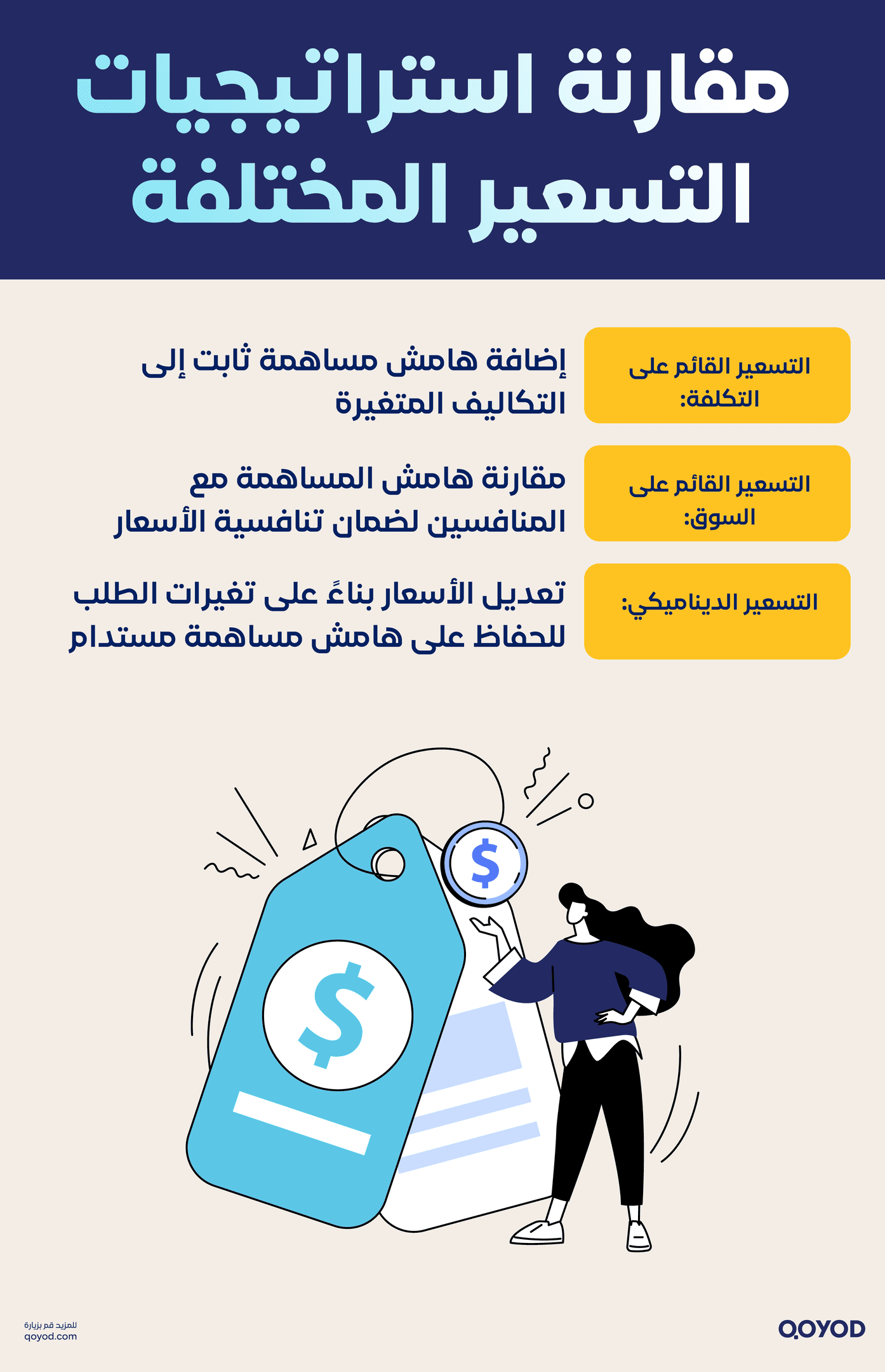- التسعير القائم على التكلفة: إضافة هامش مساهمة ثابت إلى التكاليف المتغيرة.
