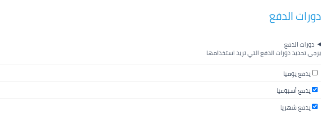 - ثم تحدد التواريخ والفترات الزمنية لدفع الرواتب، سواء كانت شهرية، أو أسبوعين، أو غير ذلك.