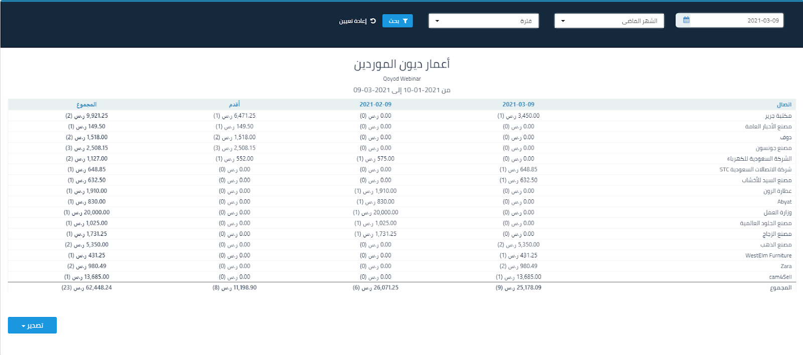يمكنك تصدير التقرير بصيغة ملف إكسل أو PDF